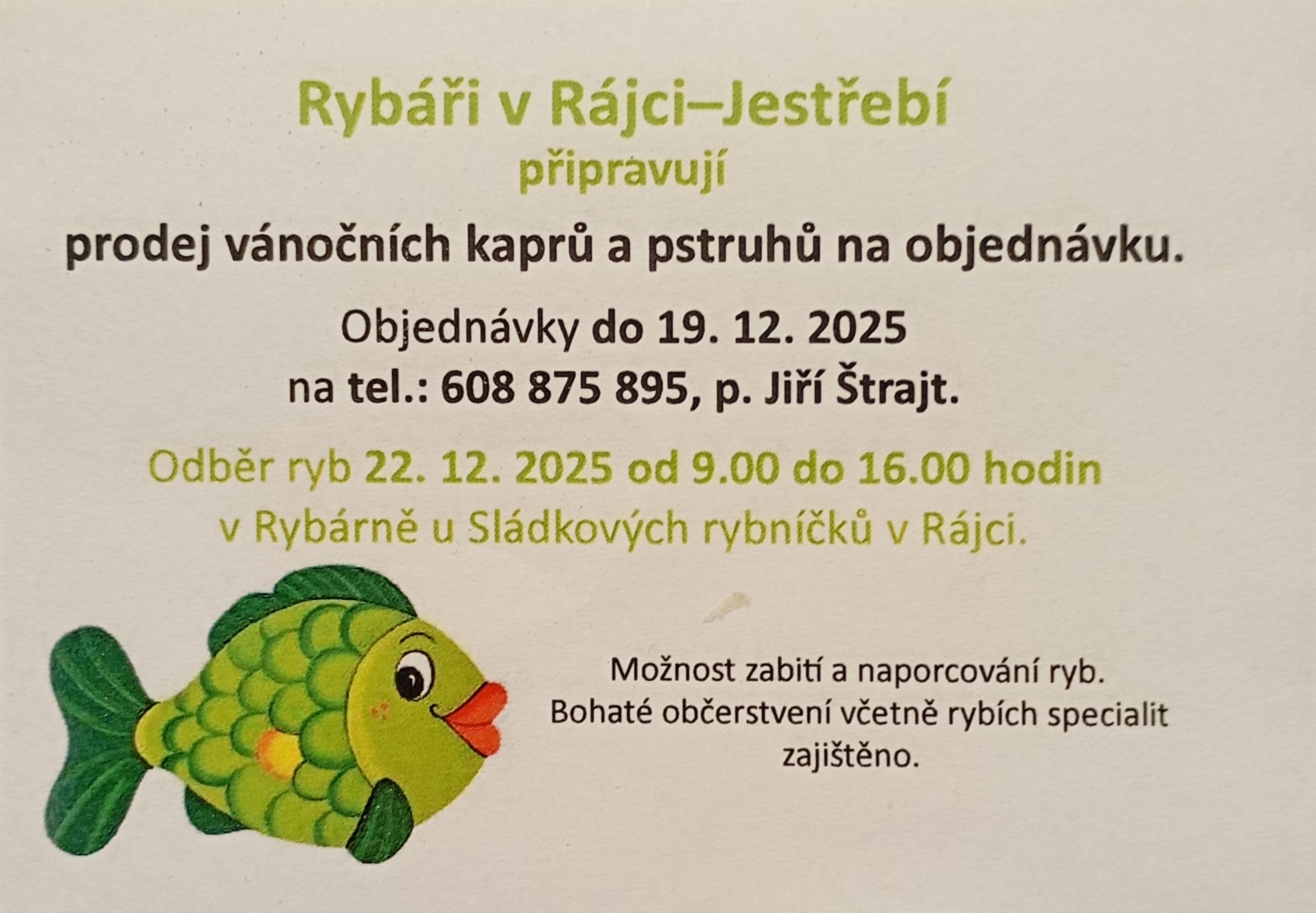 Tradiční vánoční prodej ryb na Slákových rybnících