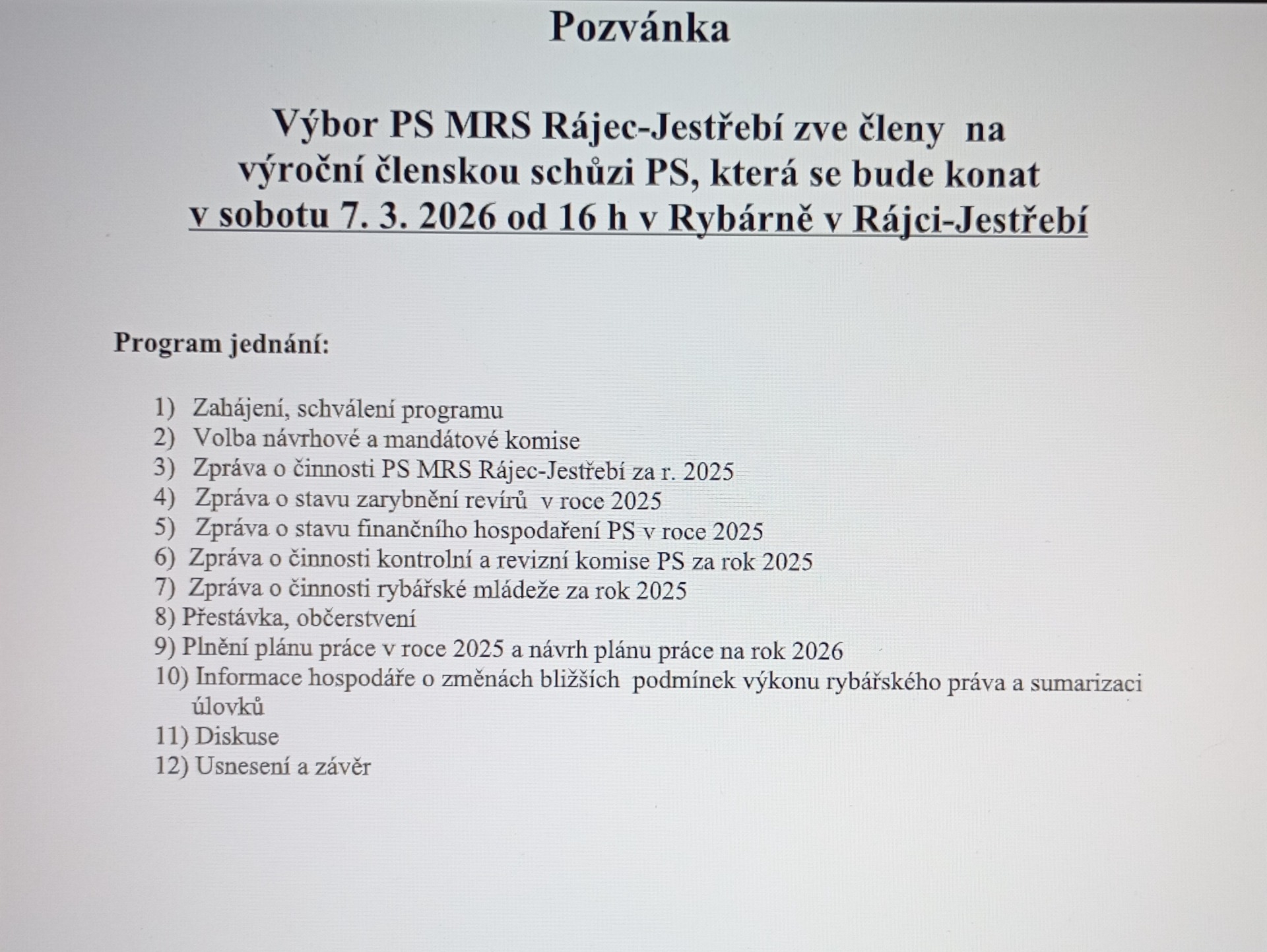 Rybáři Rájec-Jestřebí